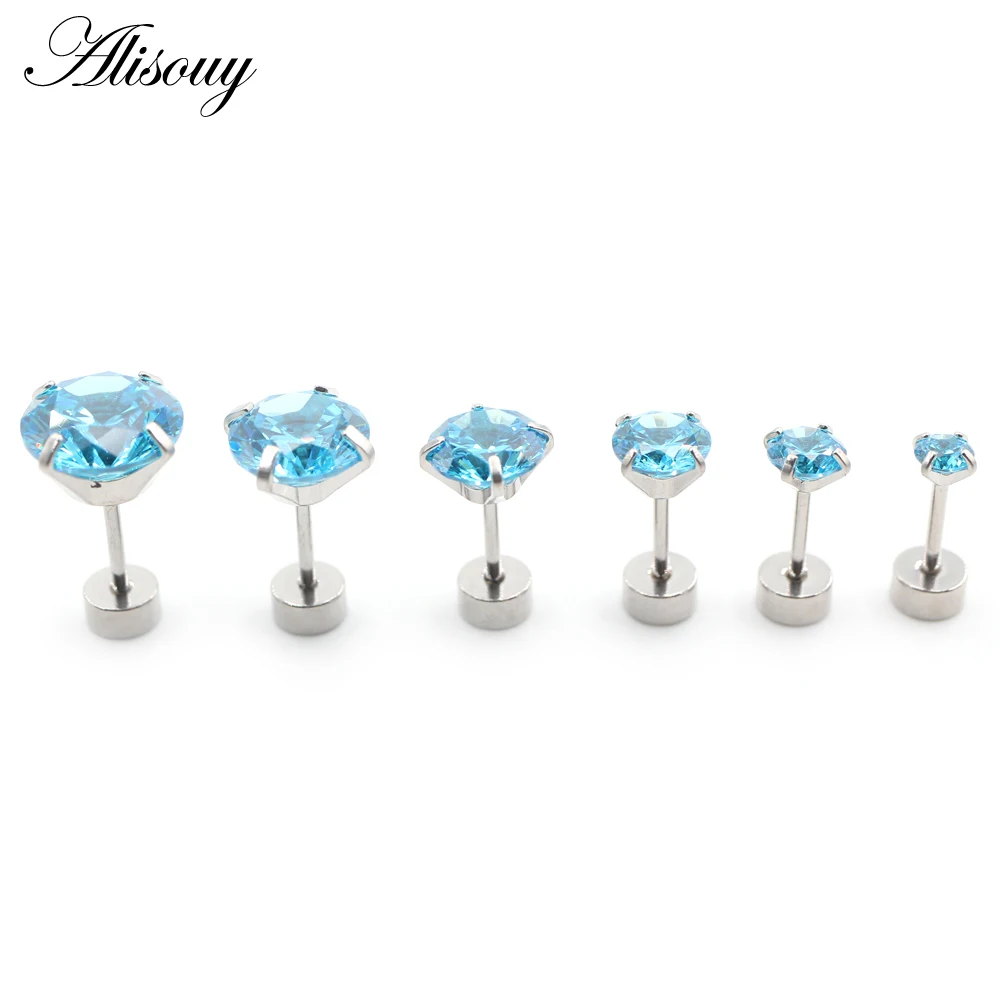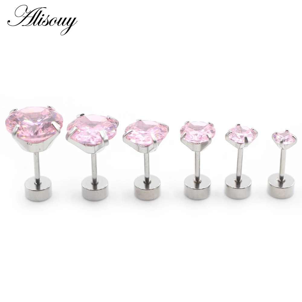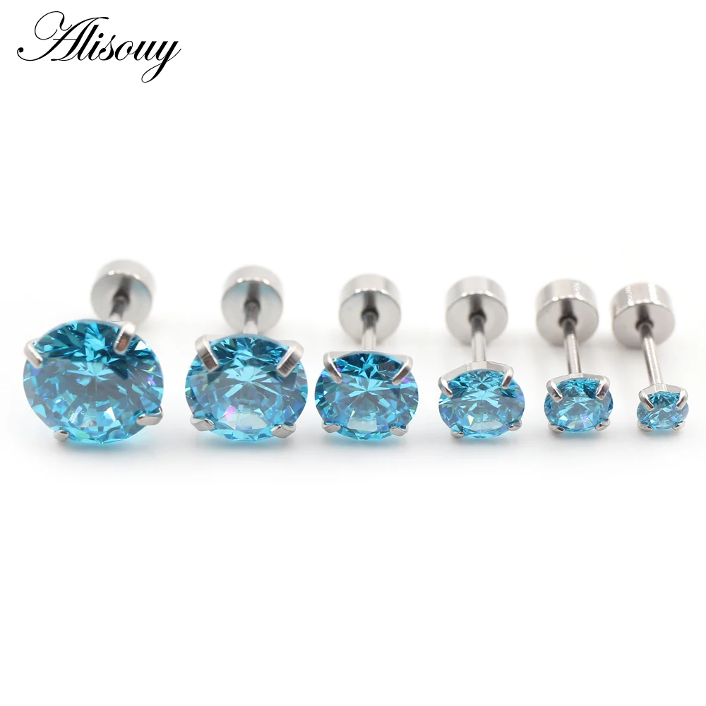 2Pcs Stainless Steel Unisex Women Men round Crystal Zircon Ear Studs Earrings 4 Prong Tragus Cartilage Piercing Jewelry