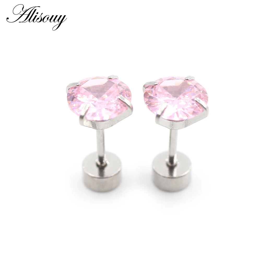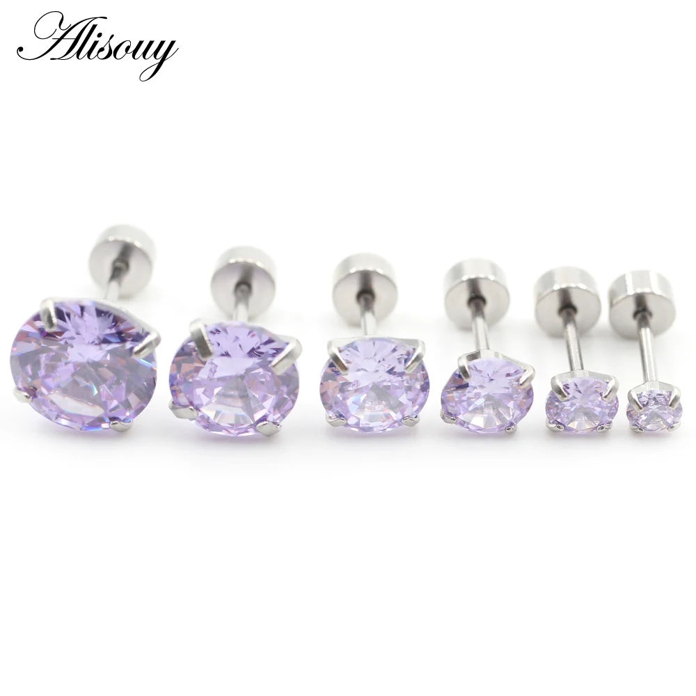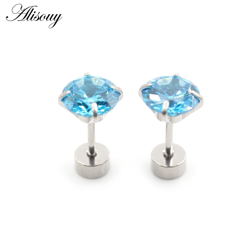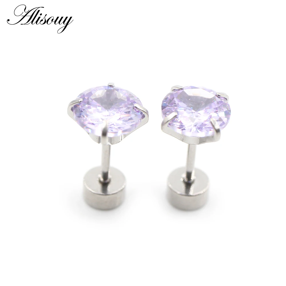 2Pcs Stainless Steel Unisex Women Men round Crystal Zircon Ear Studs Earrings 4 Prong Tragus Cartilage Piercing Jewelry